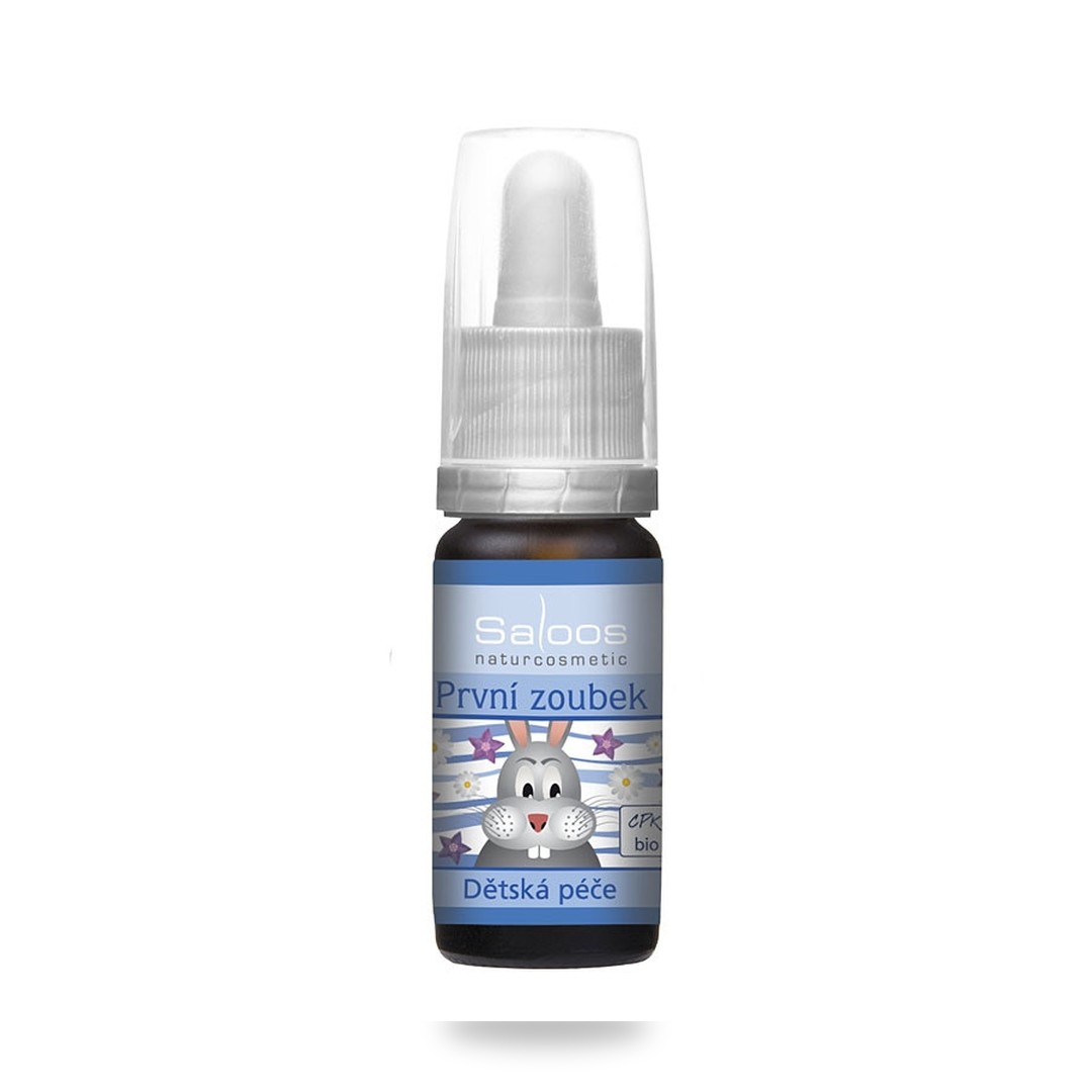 Jemný olej pro uklidňující masáž tváří a čelistí v období růstu zoubků.